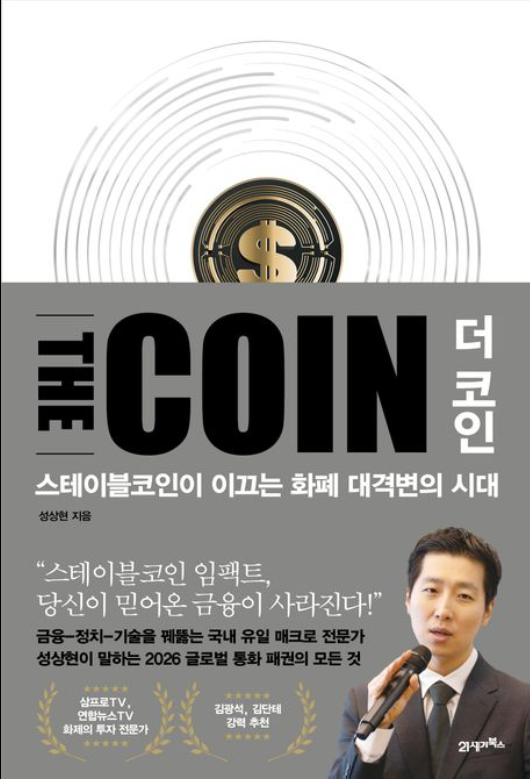 거시경제 전문가 **성상현**은 『더 코인 THE COIN』에서 스테이블코인을 단순한 암호화폐의 한 종류가 아니라, 달러·미국 국채·글로벌 유동성을 다시 연결하는 새로운 금융 인프라로 해석한다. 이 책의 강점은 “사라질 코인”을 고르는 데 있지 않다. 돈이 어디서 만들어지고, 어디로 흘러가는지를 구조로 보여준다는 데 있다.